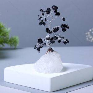 Black Obsidian Chips and Rock Base Energy Tree For Office and Home Decor