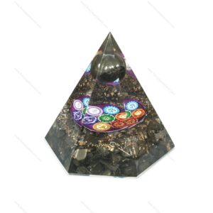 Multi Onyx Chips + Crystal Ball + Chakra Symbol Nubian Energy Orgone Pyramid