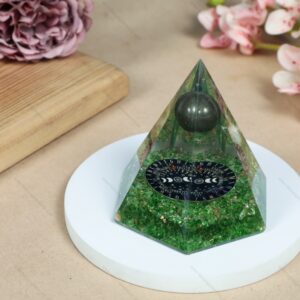 Peridot Chips + Pyrite Ball + Symbol Faceted Energy Orgone Pyramid