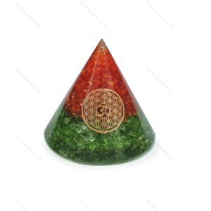 Peridot + Orange Onyx + om Symbol Cone Energy Orgone Pyramid