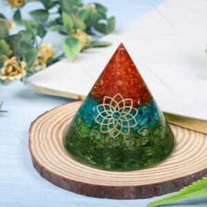 Multi Chips + Flower Symbol Cone Energy Orgone Pyramid