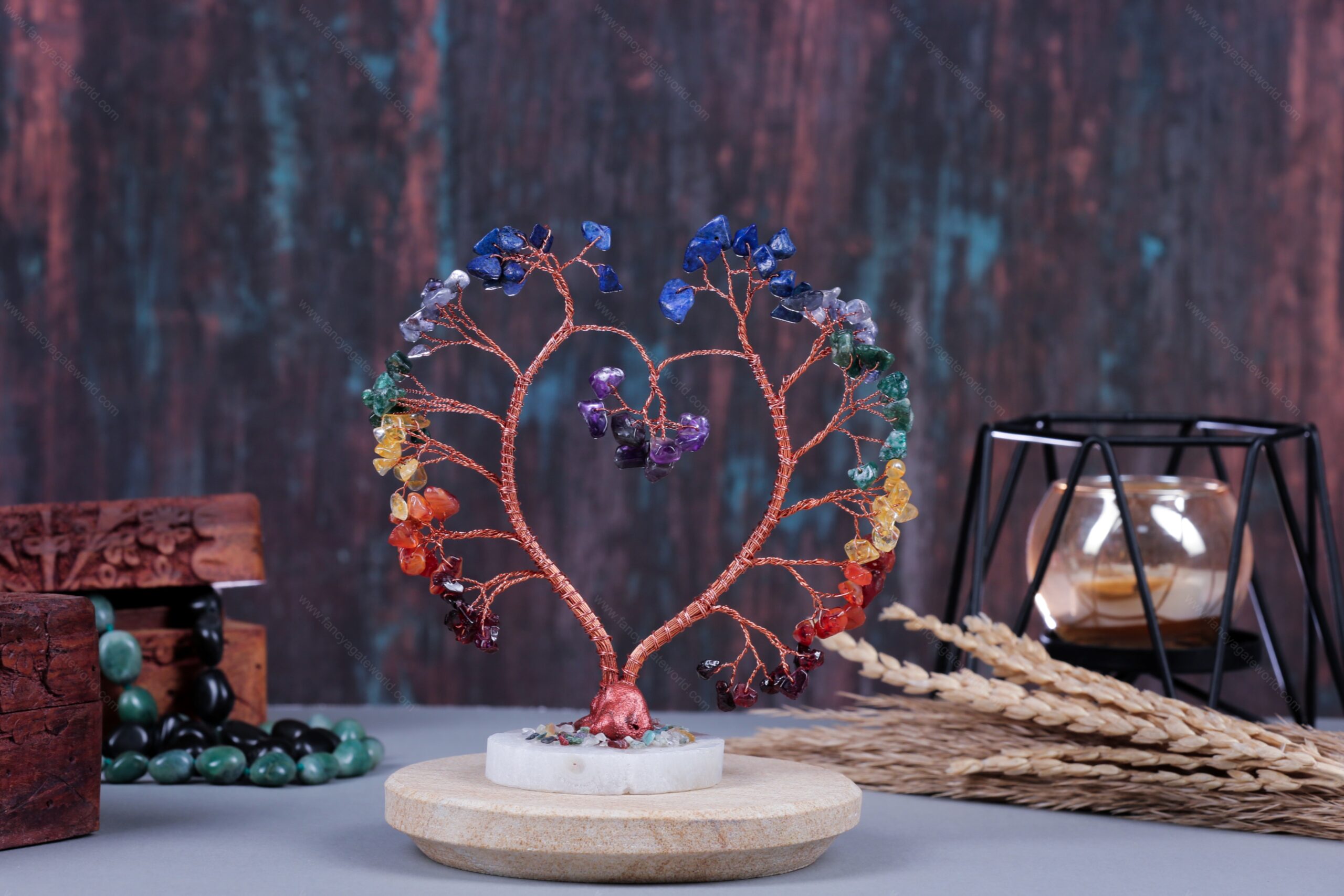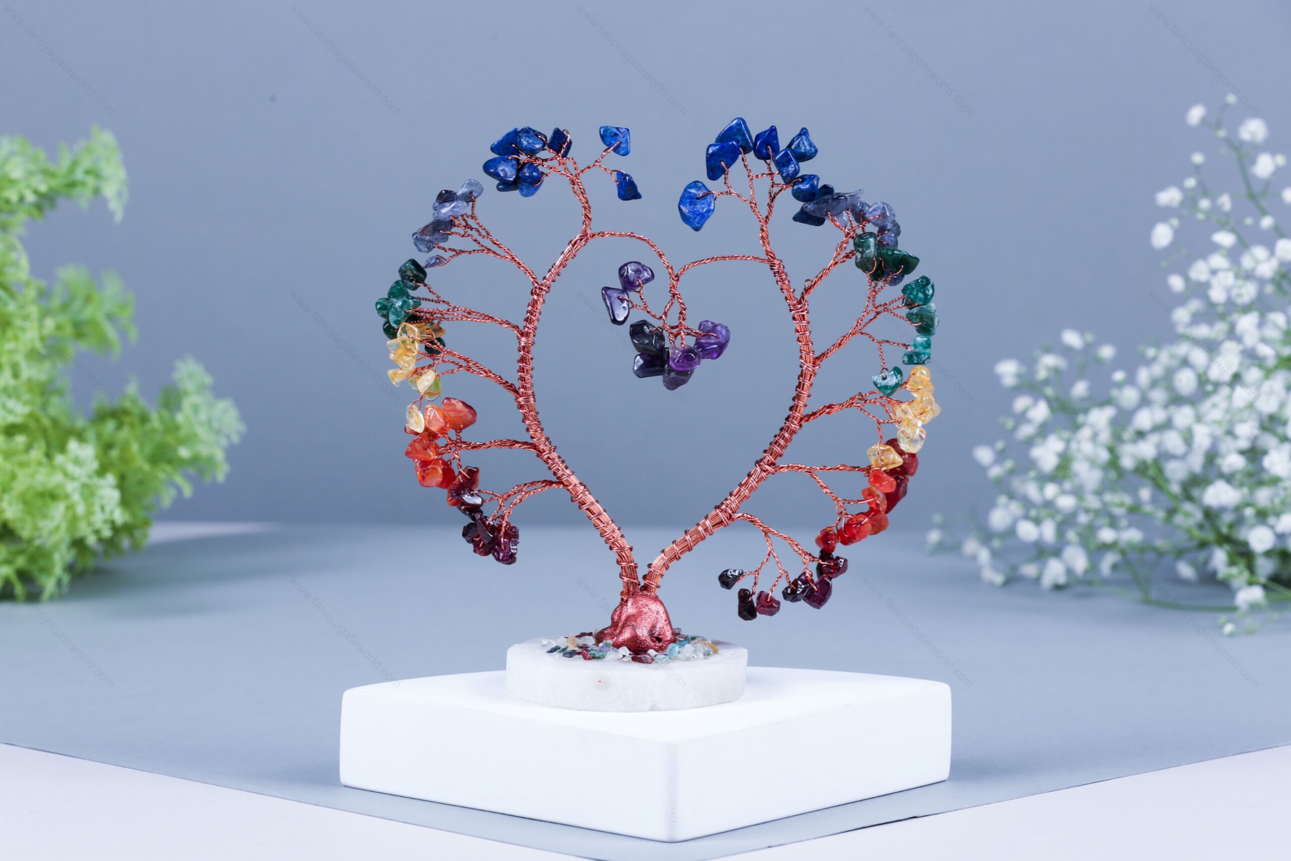 7 Chakra Chips and Quartz Slice Base Energy Tree For Office and Home Decor