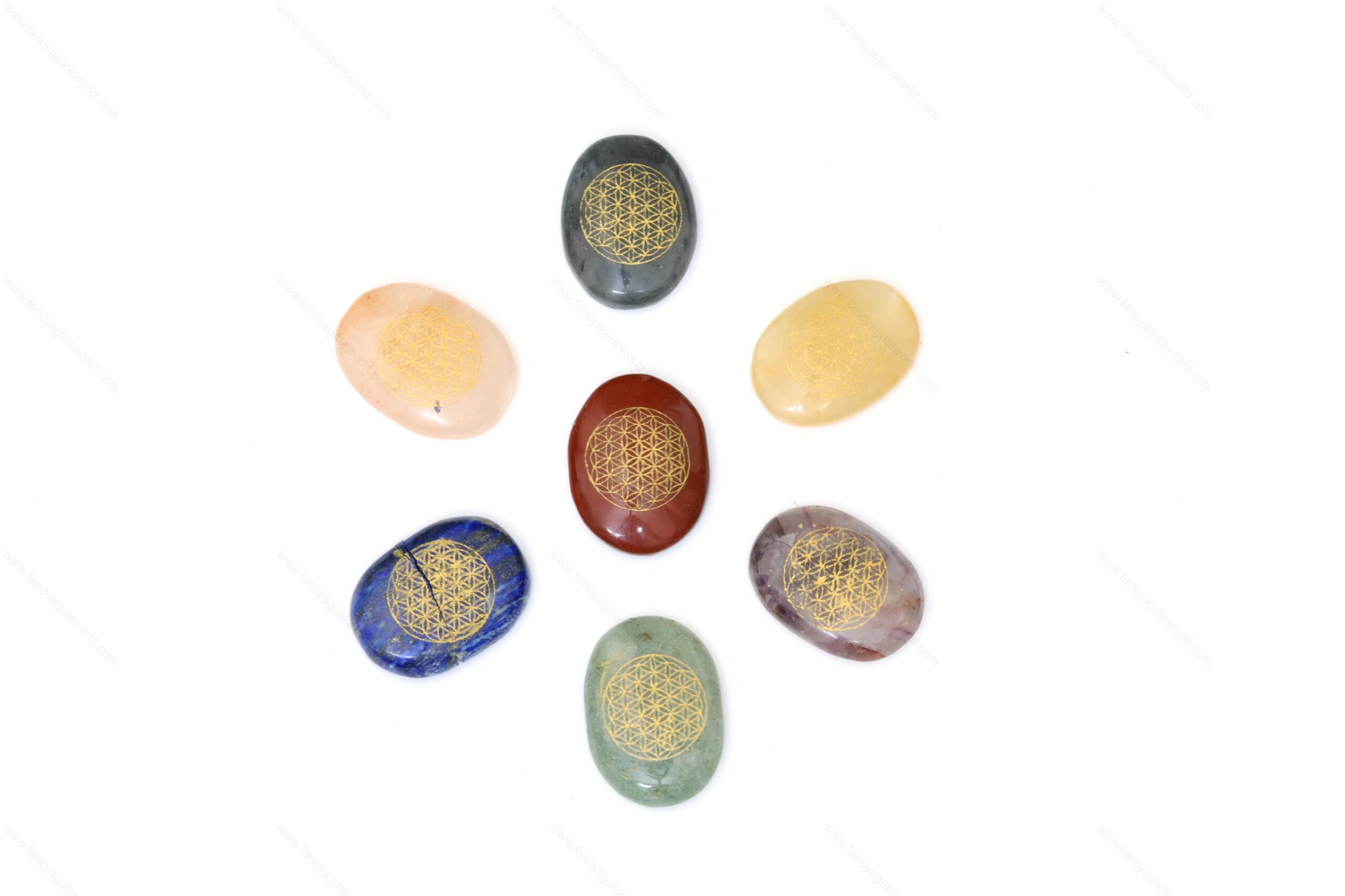 7 Chakra Oval Flower of Life Engraved Set ( 7 pcs )