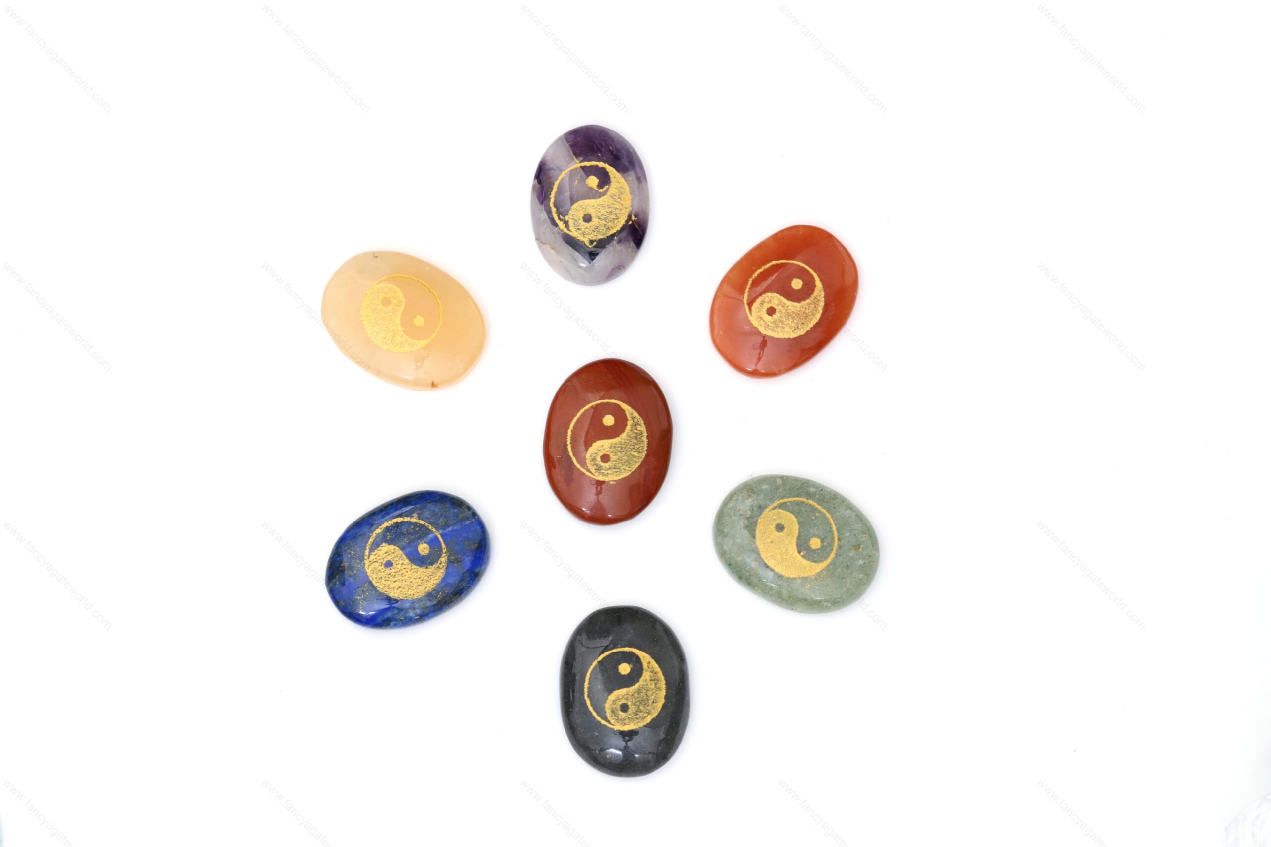 7 Chakra Oval Yin Yang Engraved Set ( 7 pcs )