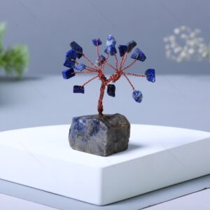 Lapis Lazuli Chips and Rock Base Energy Tree For Office and Home Decor