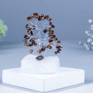 Tiger Eye Chips and Rock Base Energy Tree For Office and Home Decor
