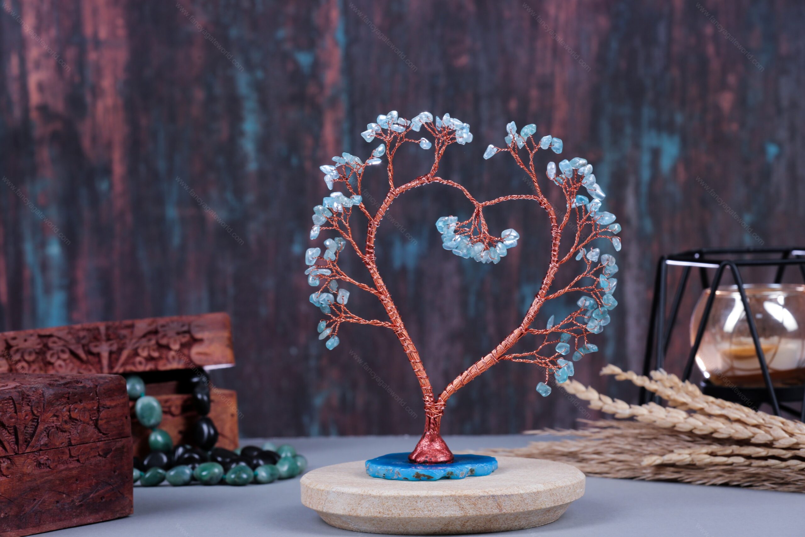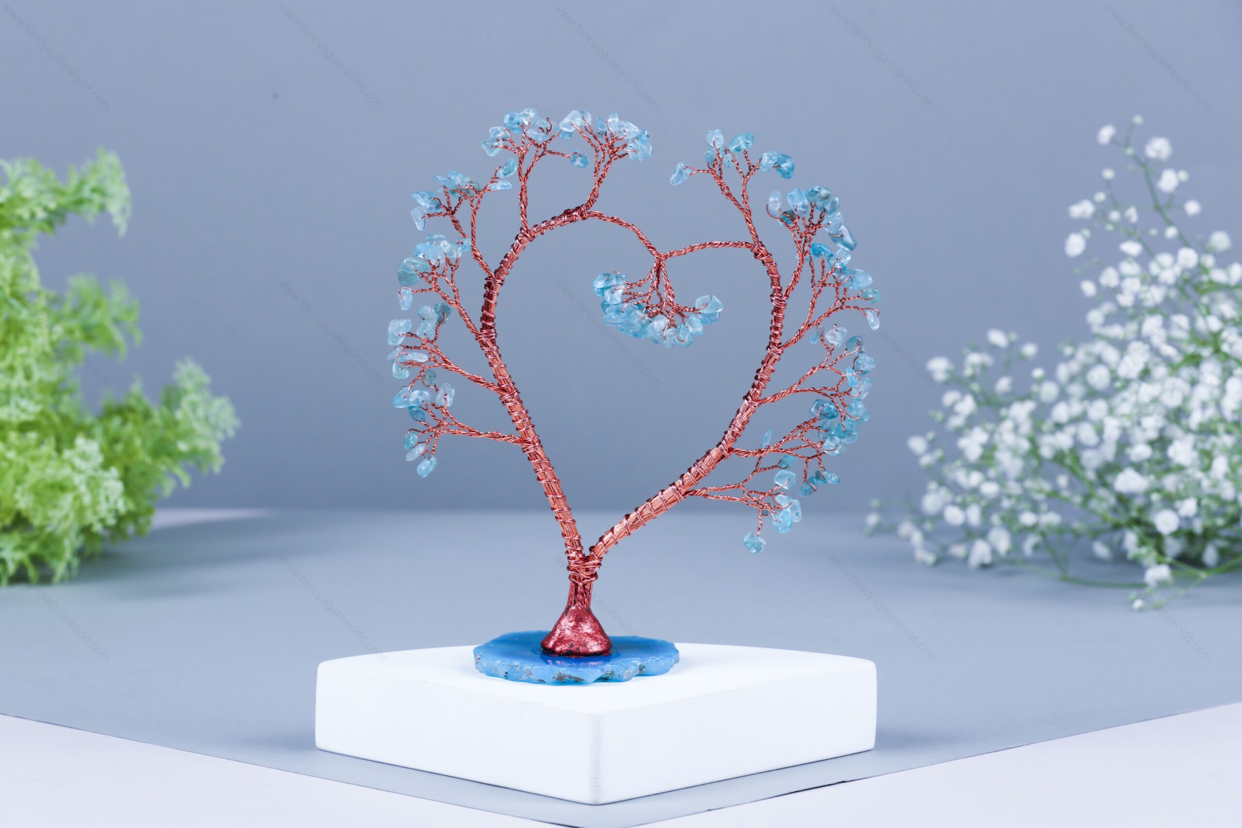 Aquamarine Chips and Agate Slice Base Energy Tree For Office and Home Decor