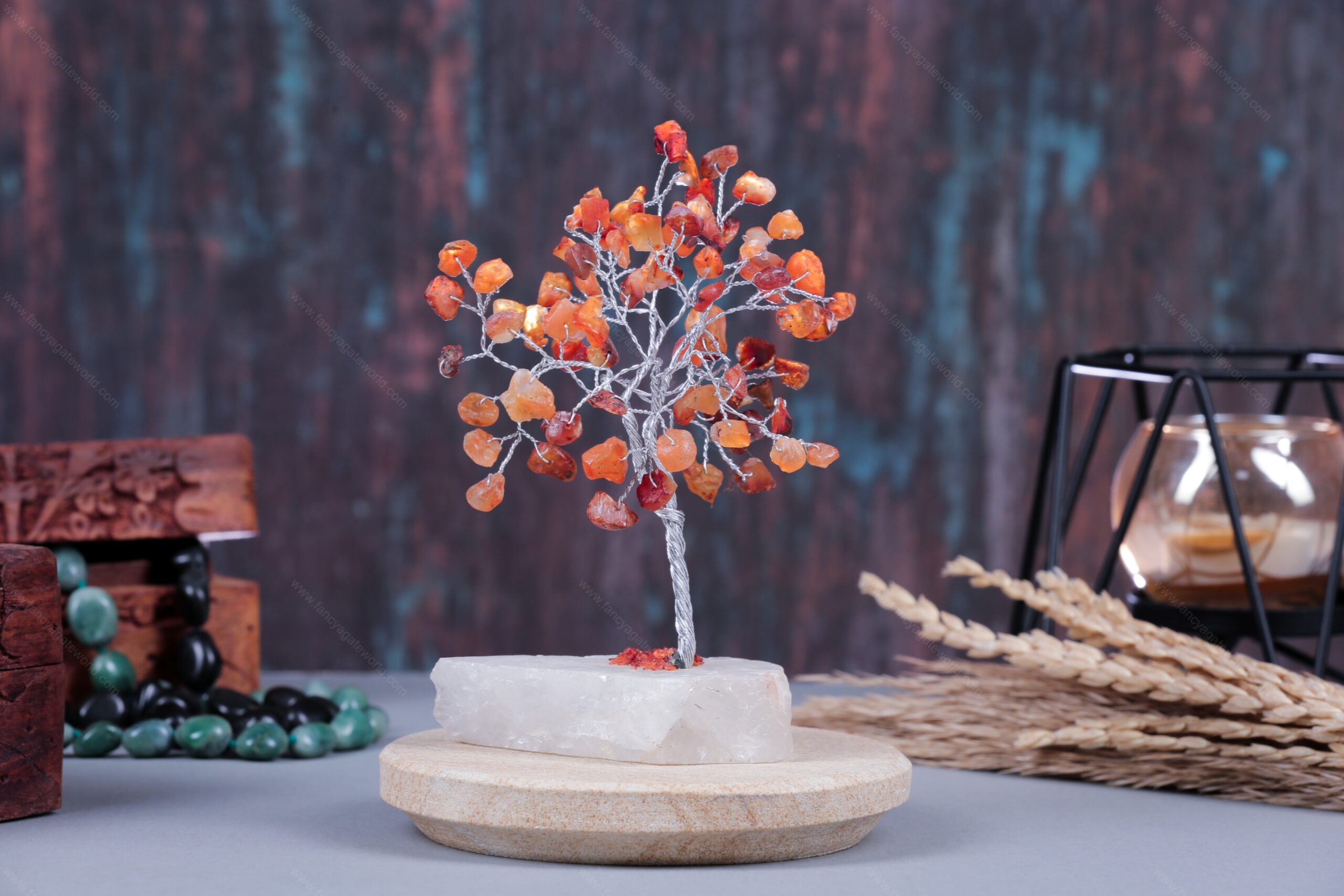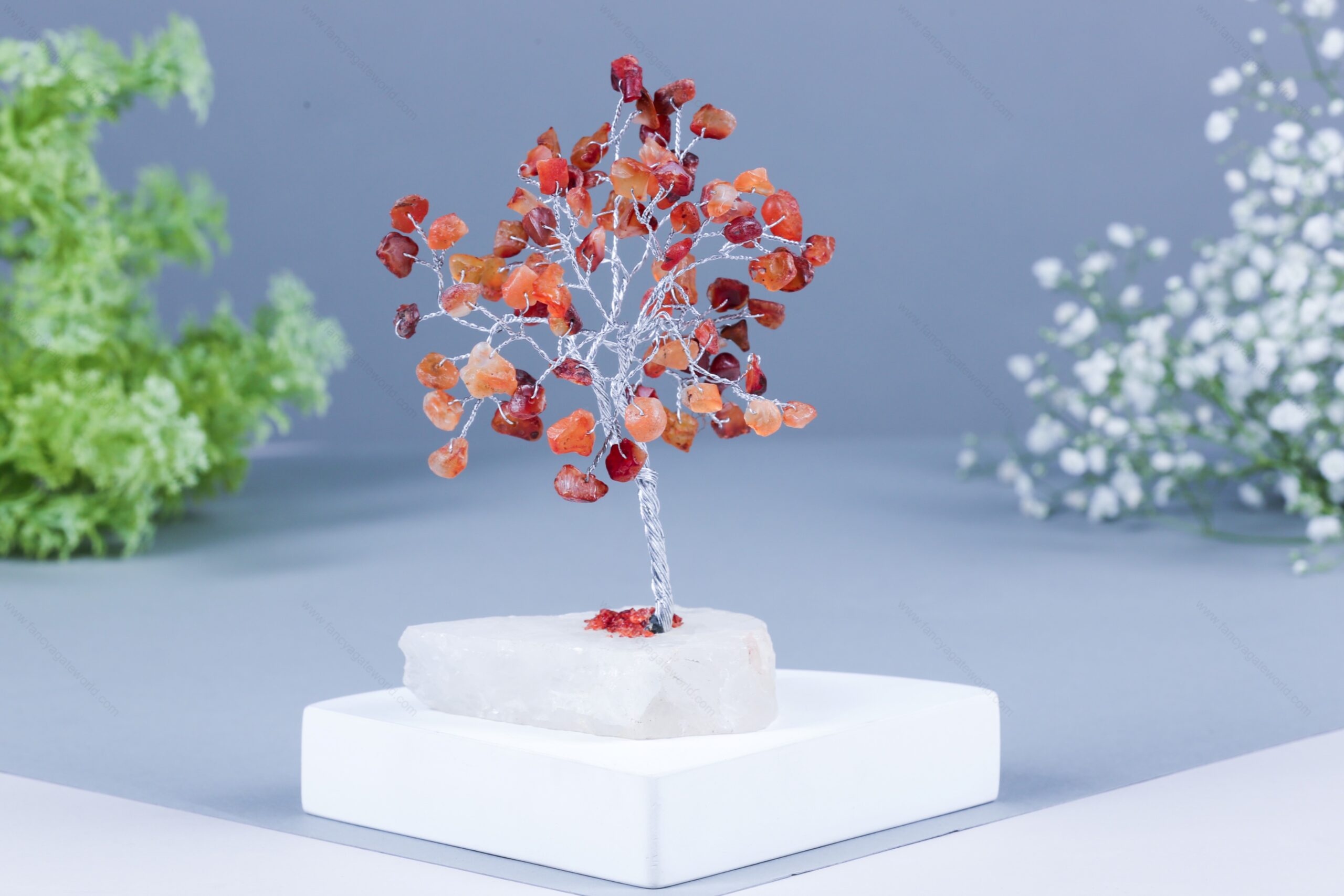 Carnelian Chips Quartz Slice Base Energy Tree For Office and Home Decor