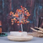 Red Carnelian Chips and Rock Base Energy Tree For Office and Home Decor