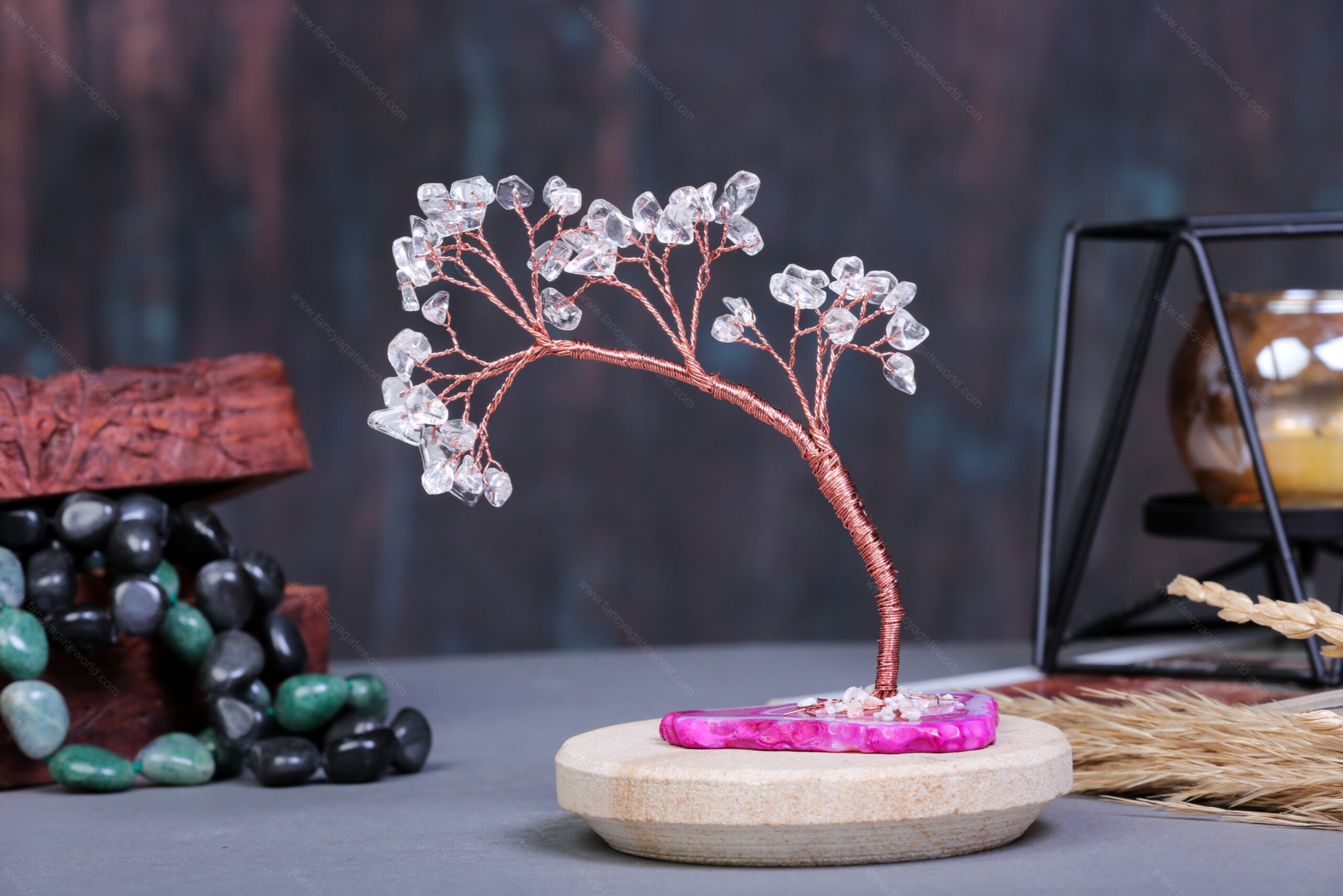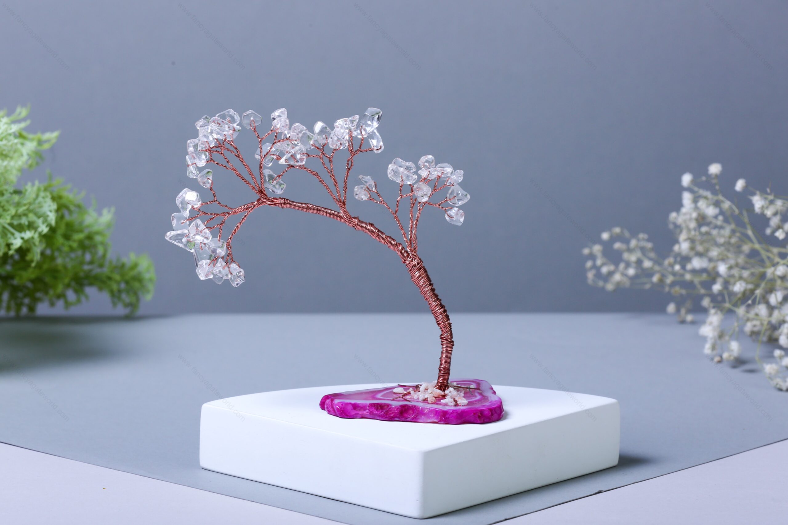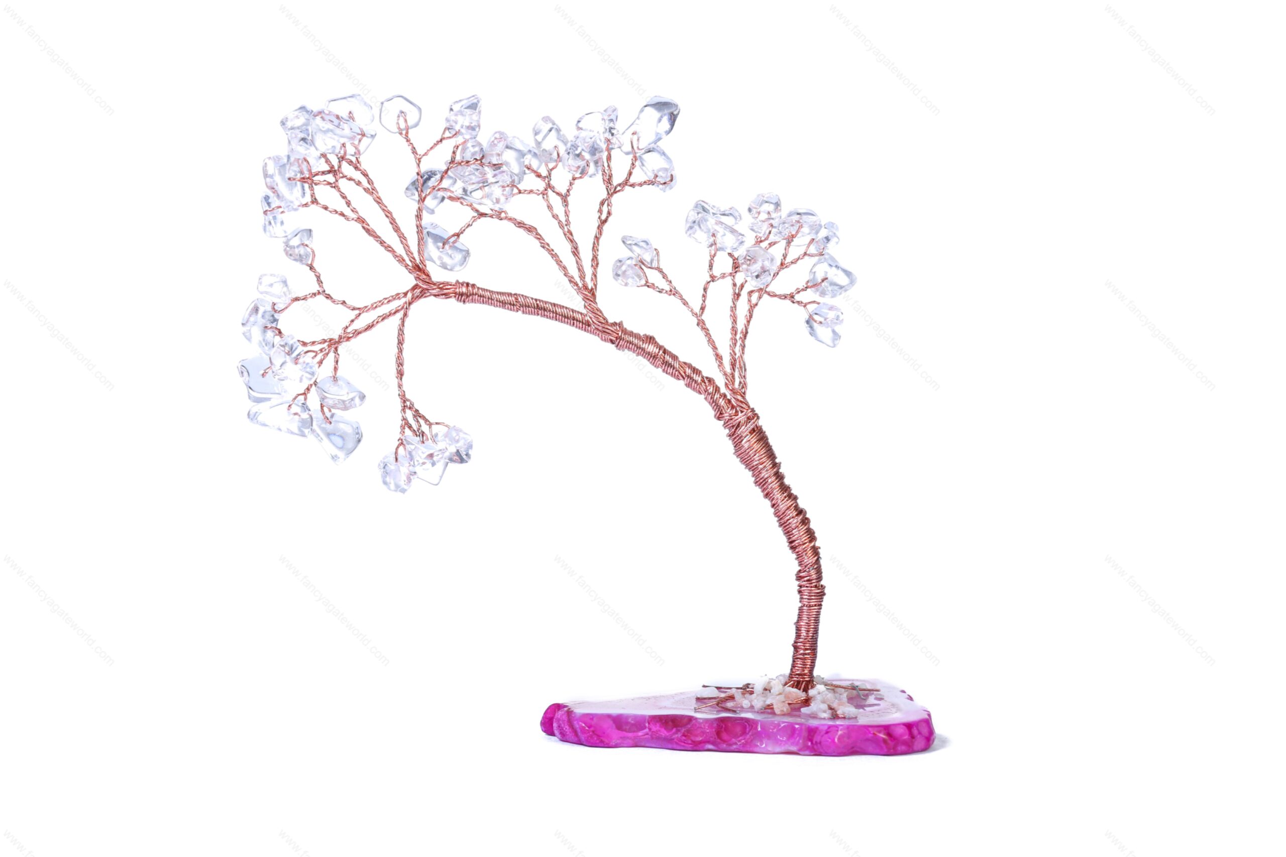 Crystal Quartz Chips and Agate Slice Base Energy Tree For Office and Home Decor