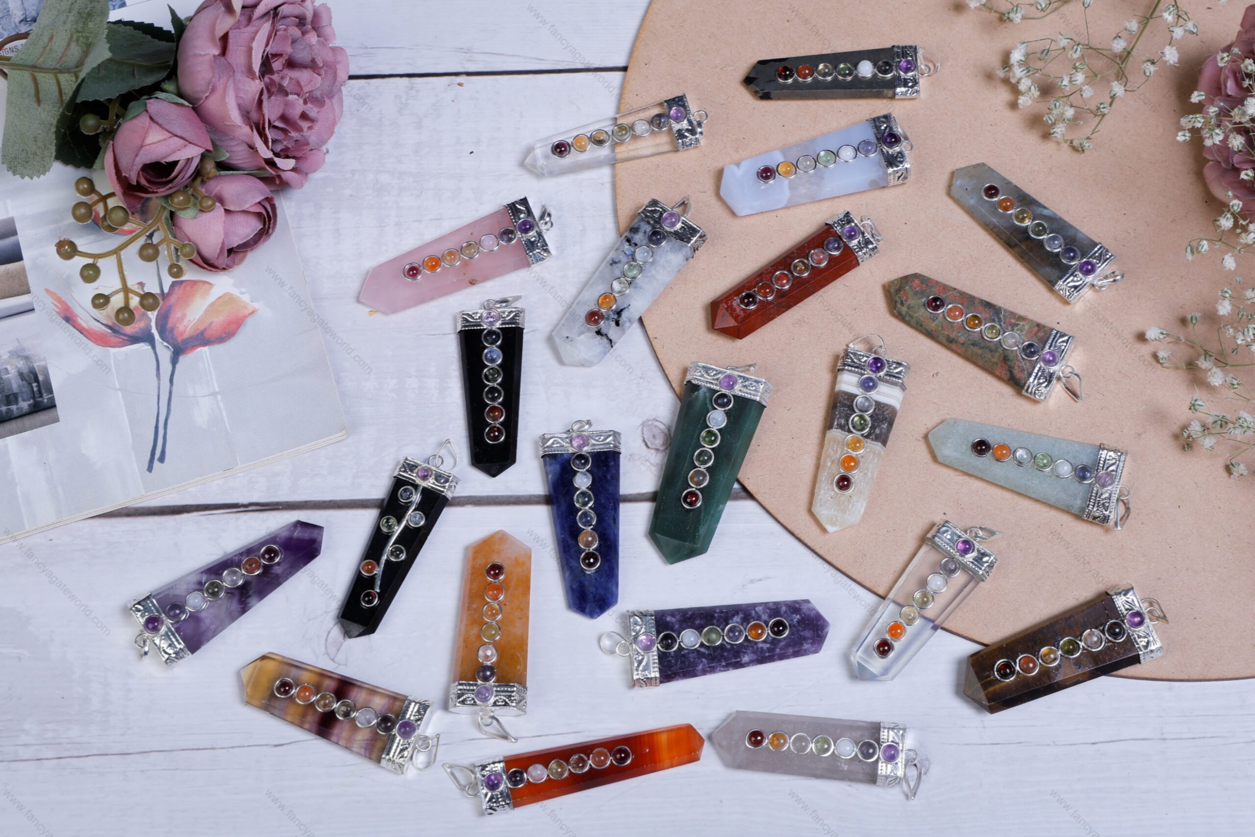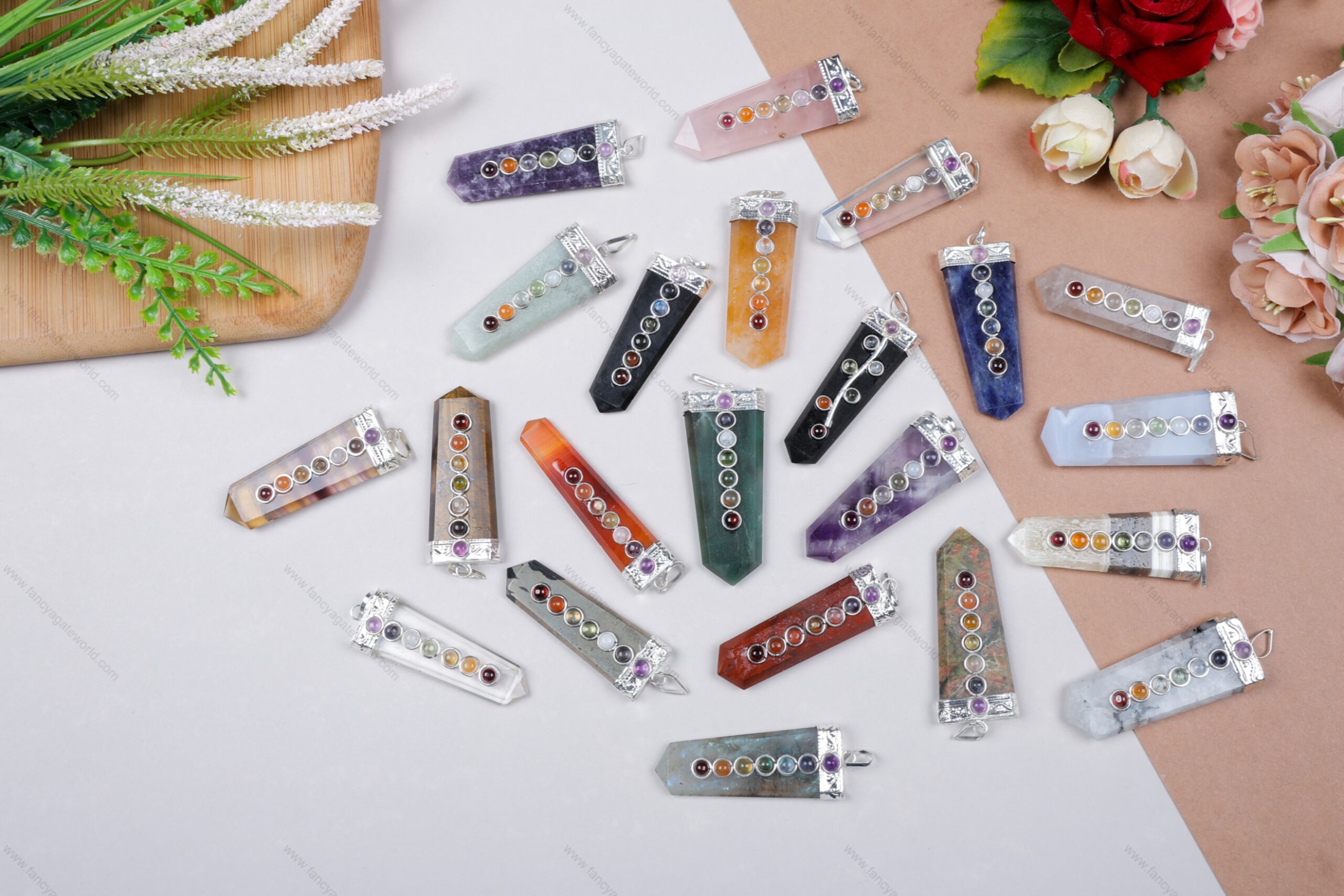 Gemstone Chakra Pencil Point pendants