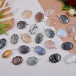 Gemstone Oval Shaped Metal Frame Pendants