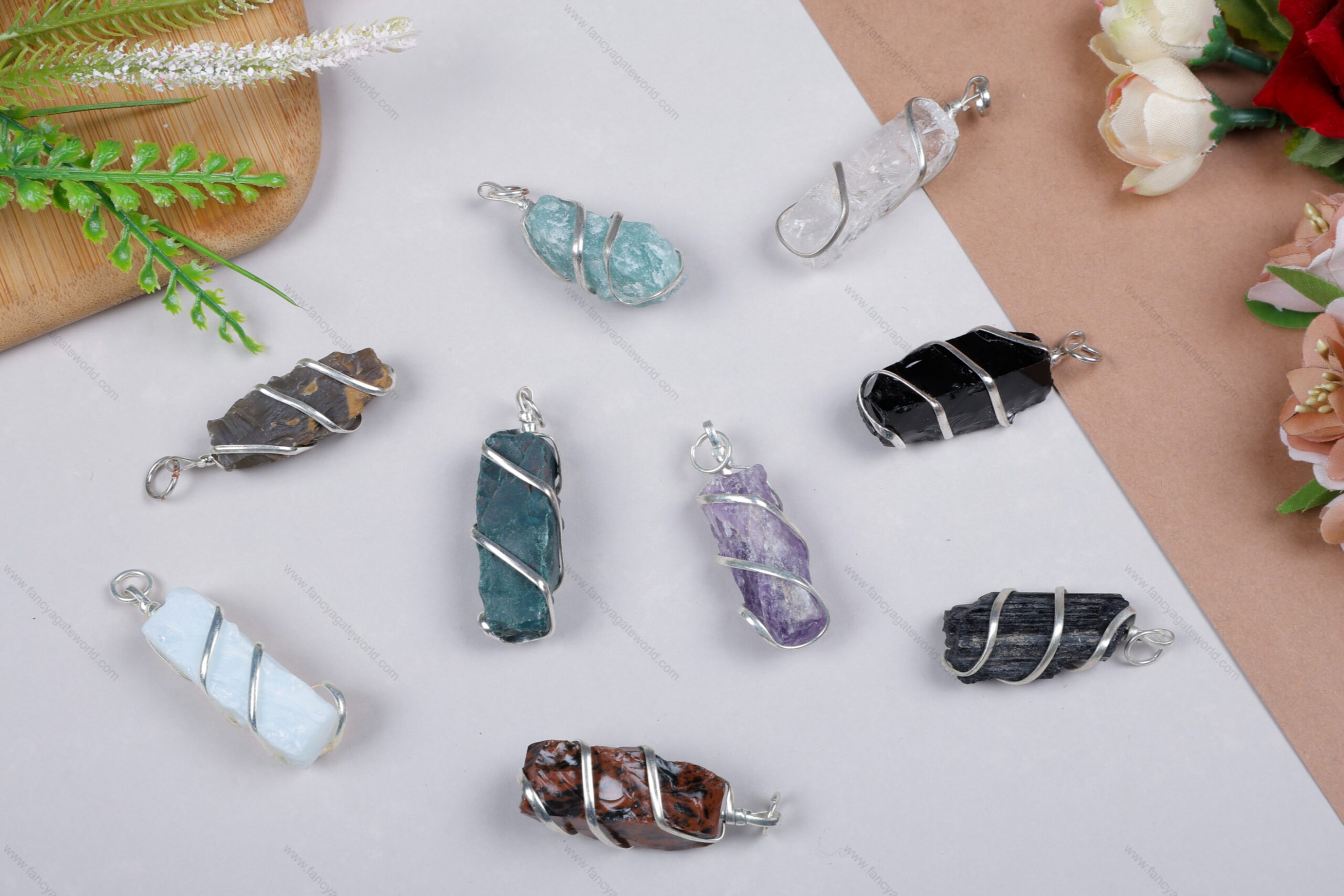 Gemstone Wire Wrapped Flat pendants