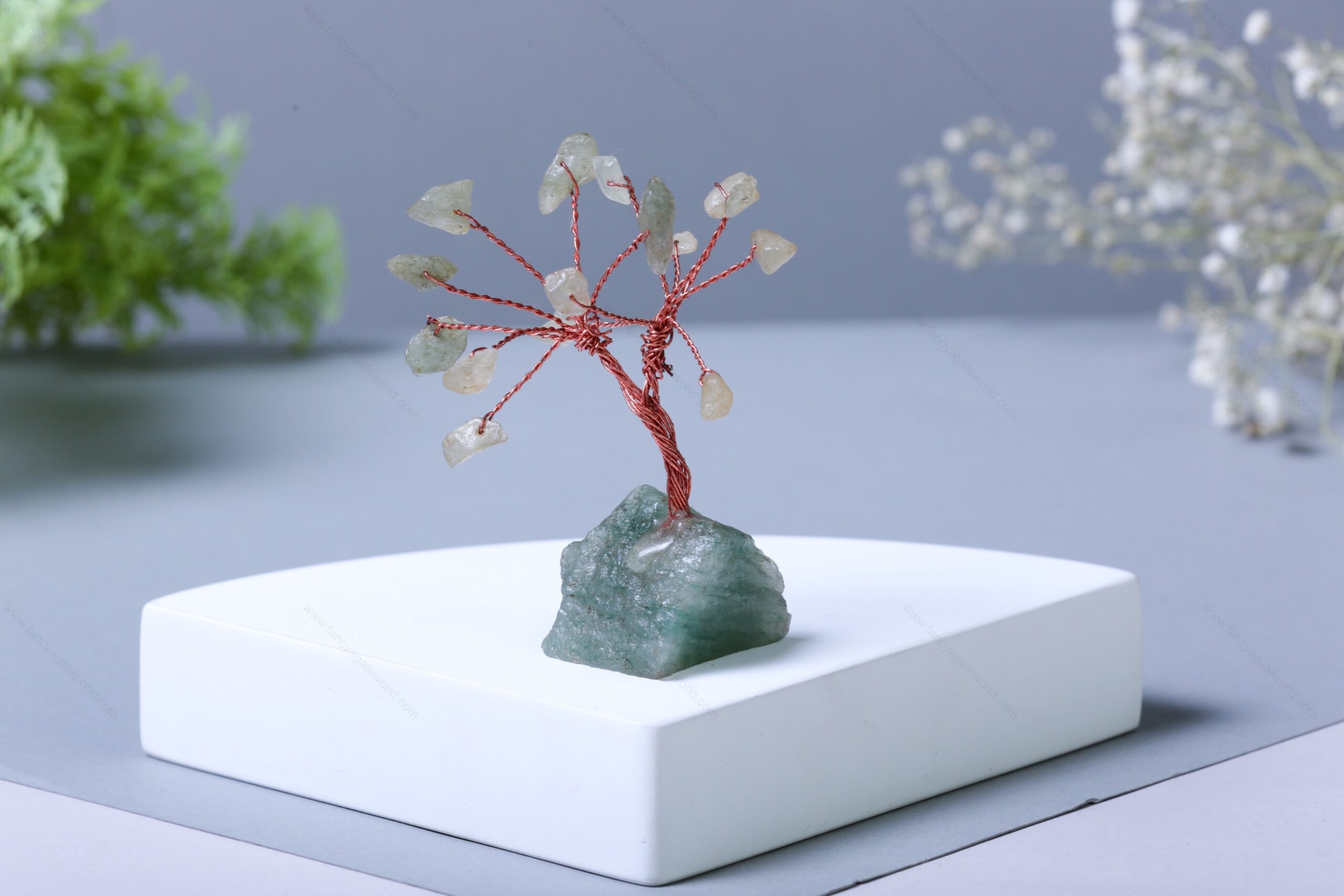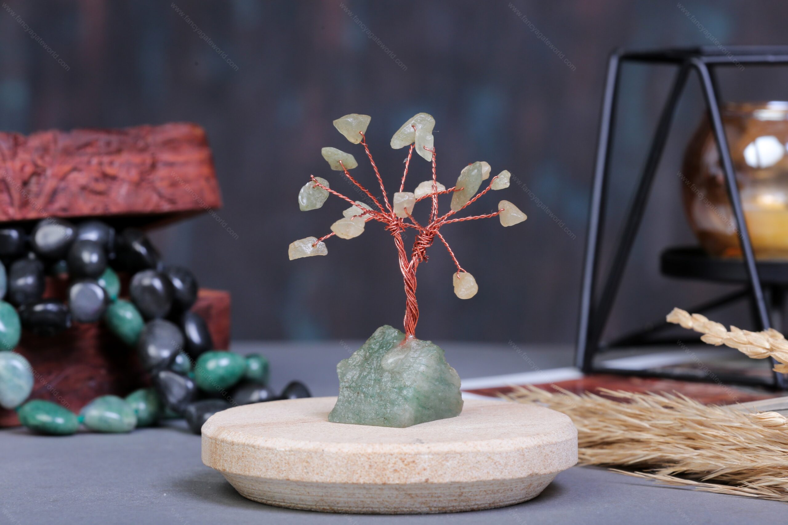 Green Aventurine Chips and Rock Base Energy Tree For Office and Home Decor