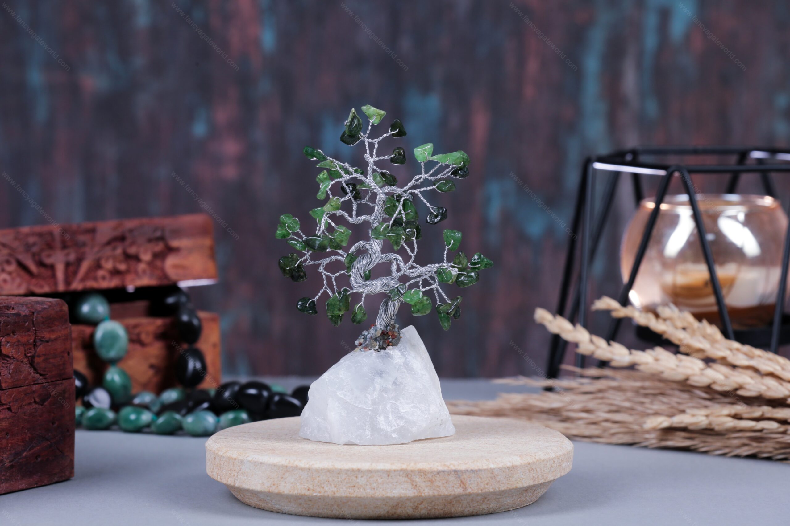 Green Jade Chips and Rock Base Energy Tree For Office and Home Decor