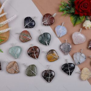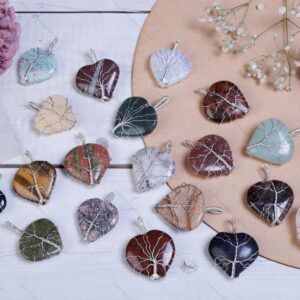 Gemstone Heart Shaped Tree Of Life Wrapped Pendants