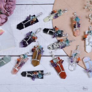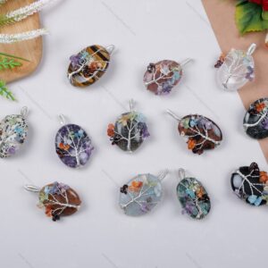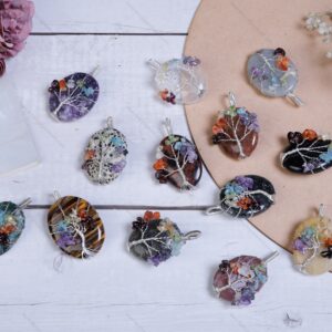 Gemstone Tree of Life Chakra Wire Wrapped Flat pendants