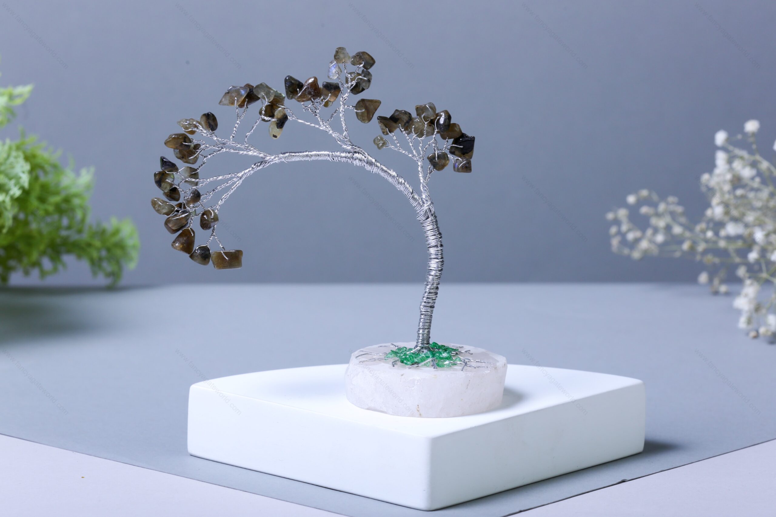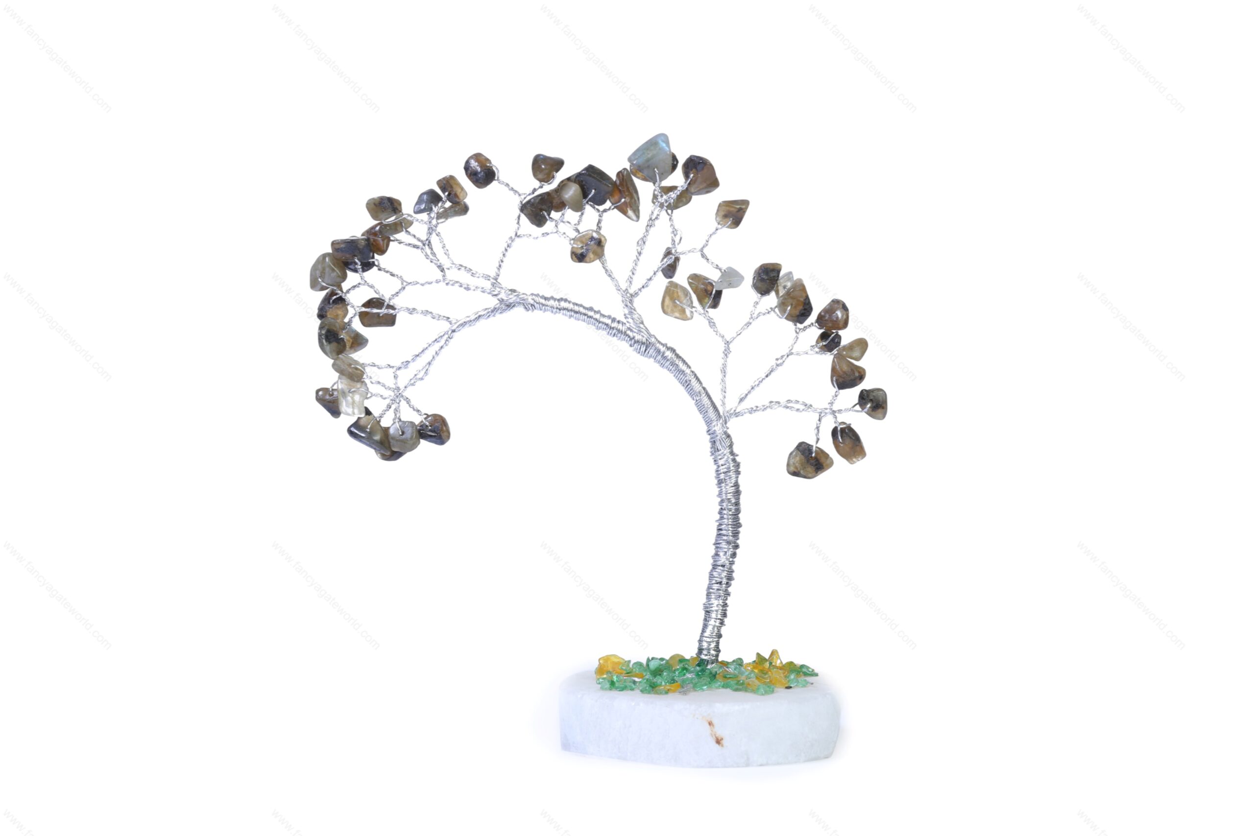 Labradorite Chips and Quartz Round Base Energy Tree For Office and Home Decor