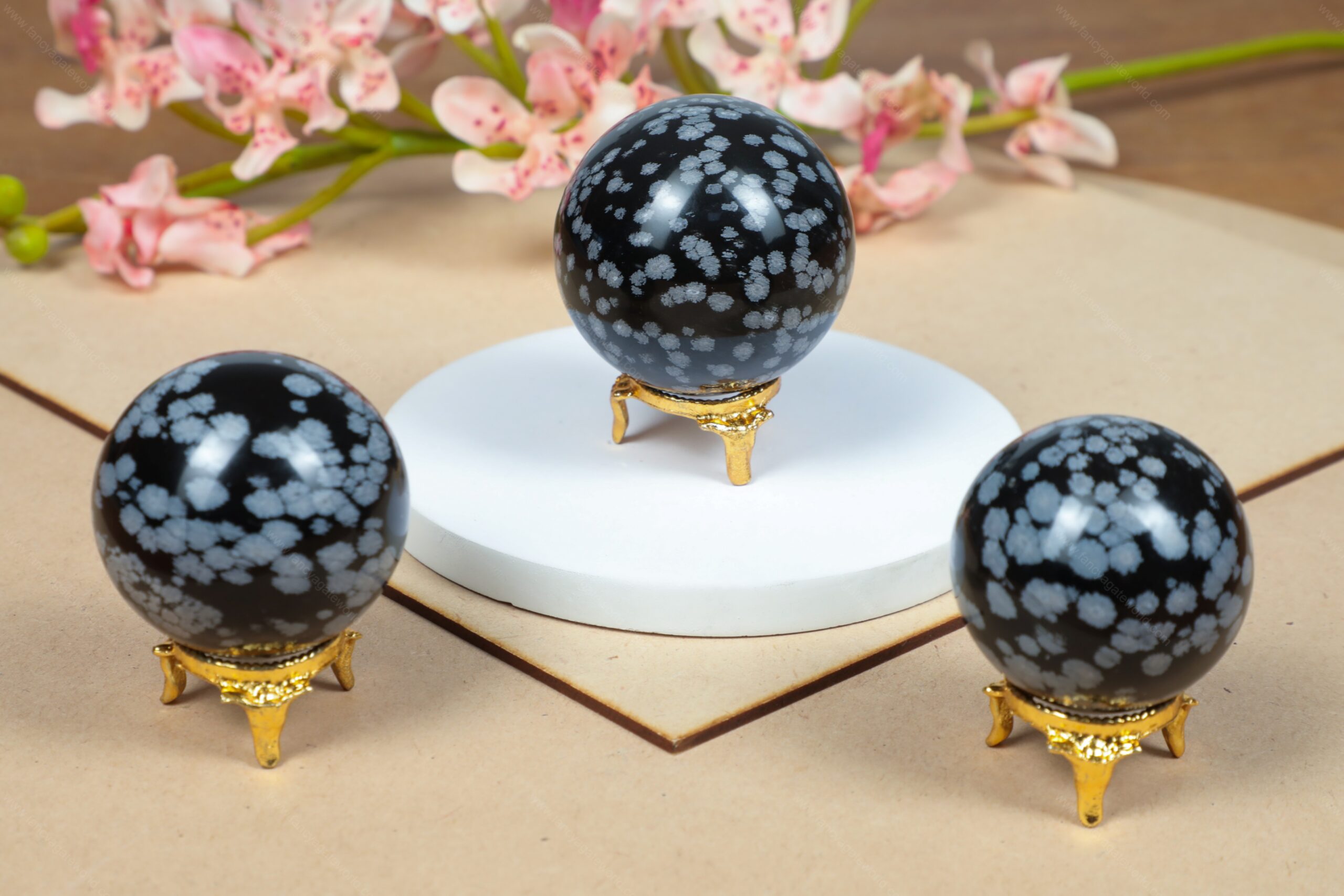 Snowflake Obsidian Sphere for Healing, Meditation, Fortune Reading & Home decor.
