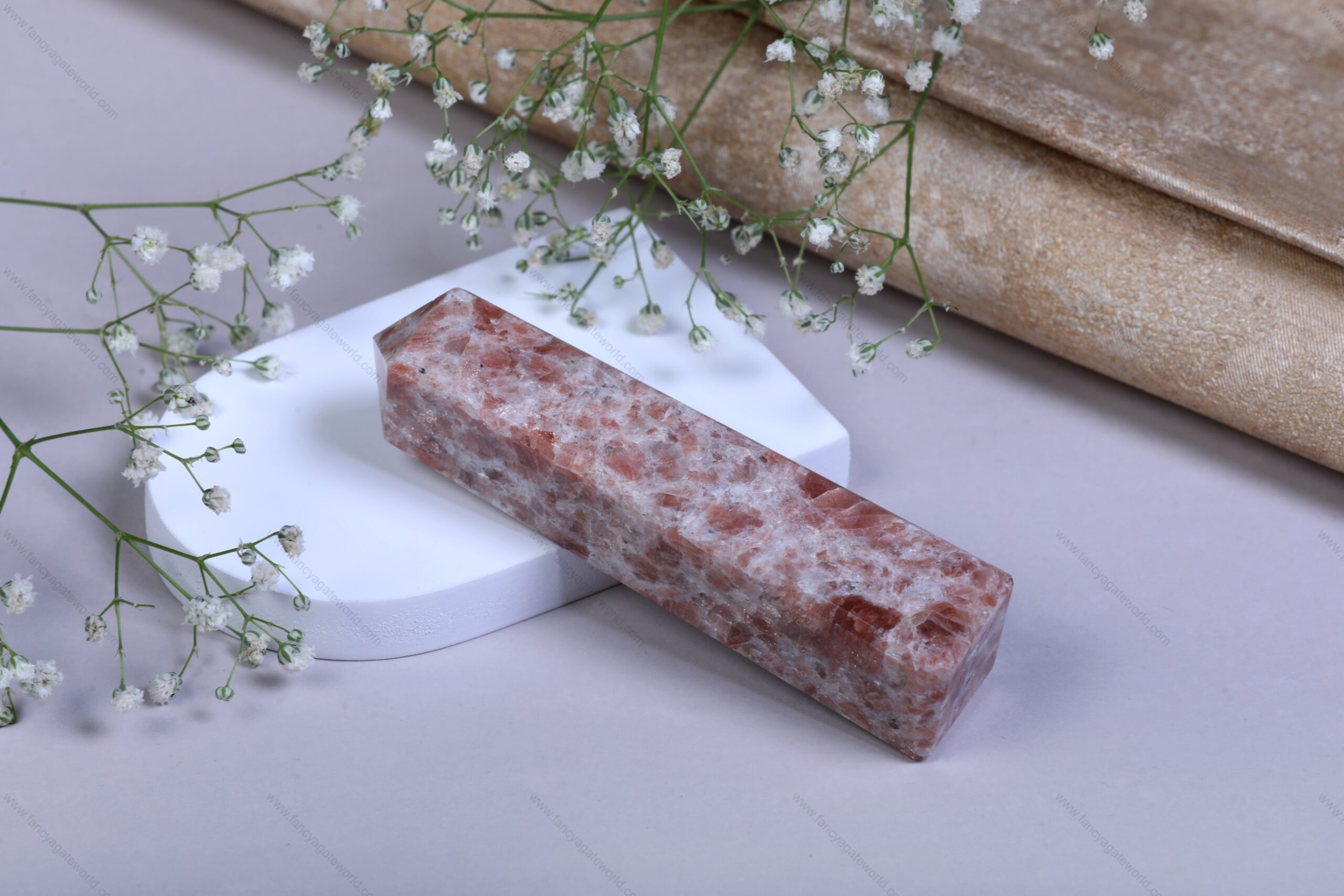 White Rainbow Moonstone Polished 4 Faced Stone Tower