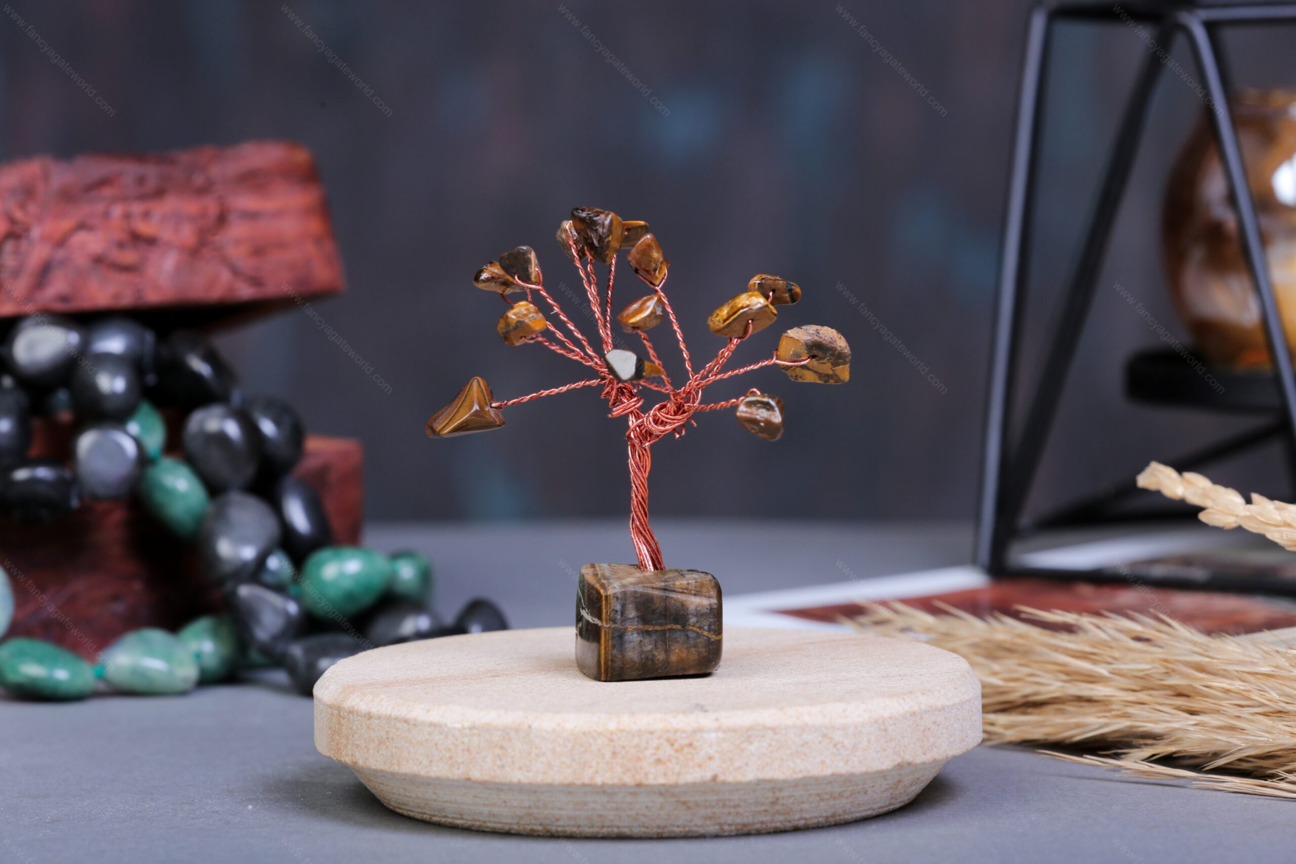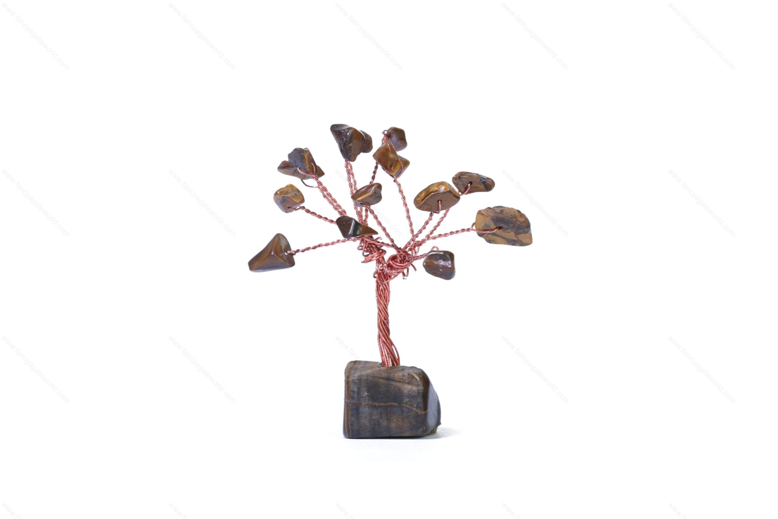 Tiger Eye Chips and Rock Base Energy Tree For Office and Home Decor