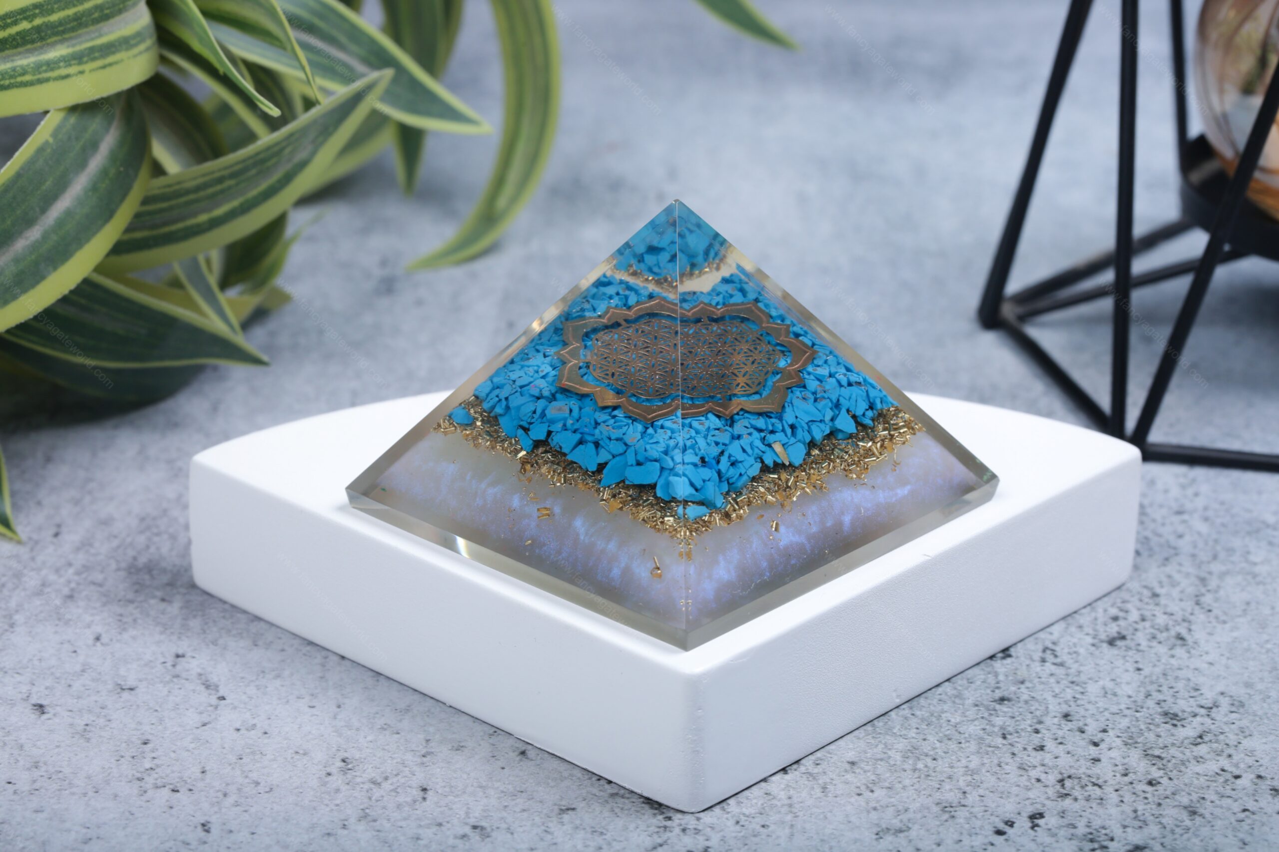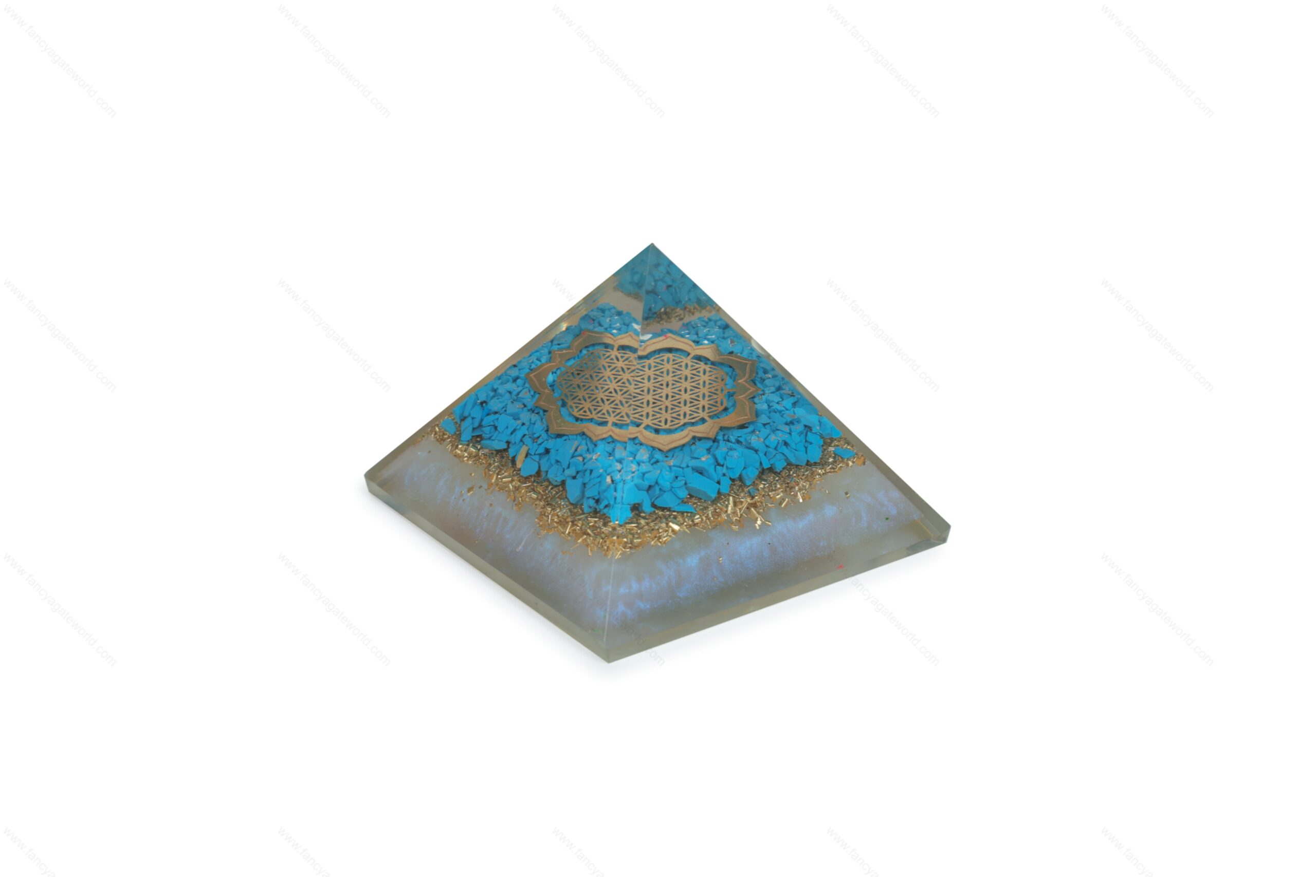 Turquoise + Flower of Life Symbol Energy Orgone Pyramid