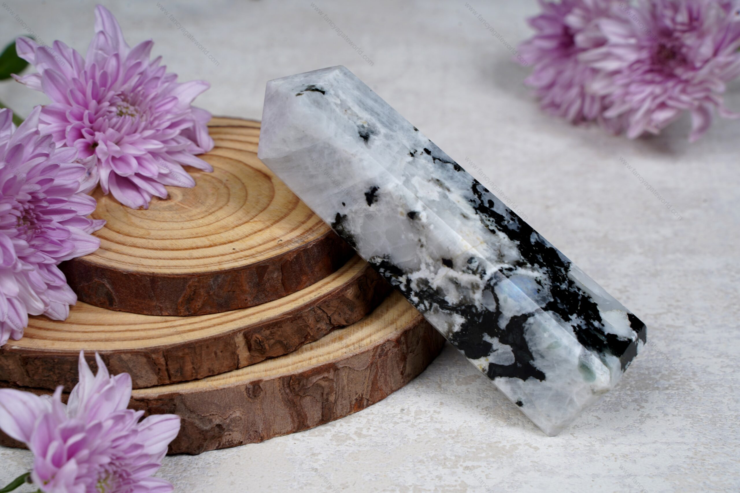 White Rainbow Moonstone Polished 4 Faced Stone Tower