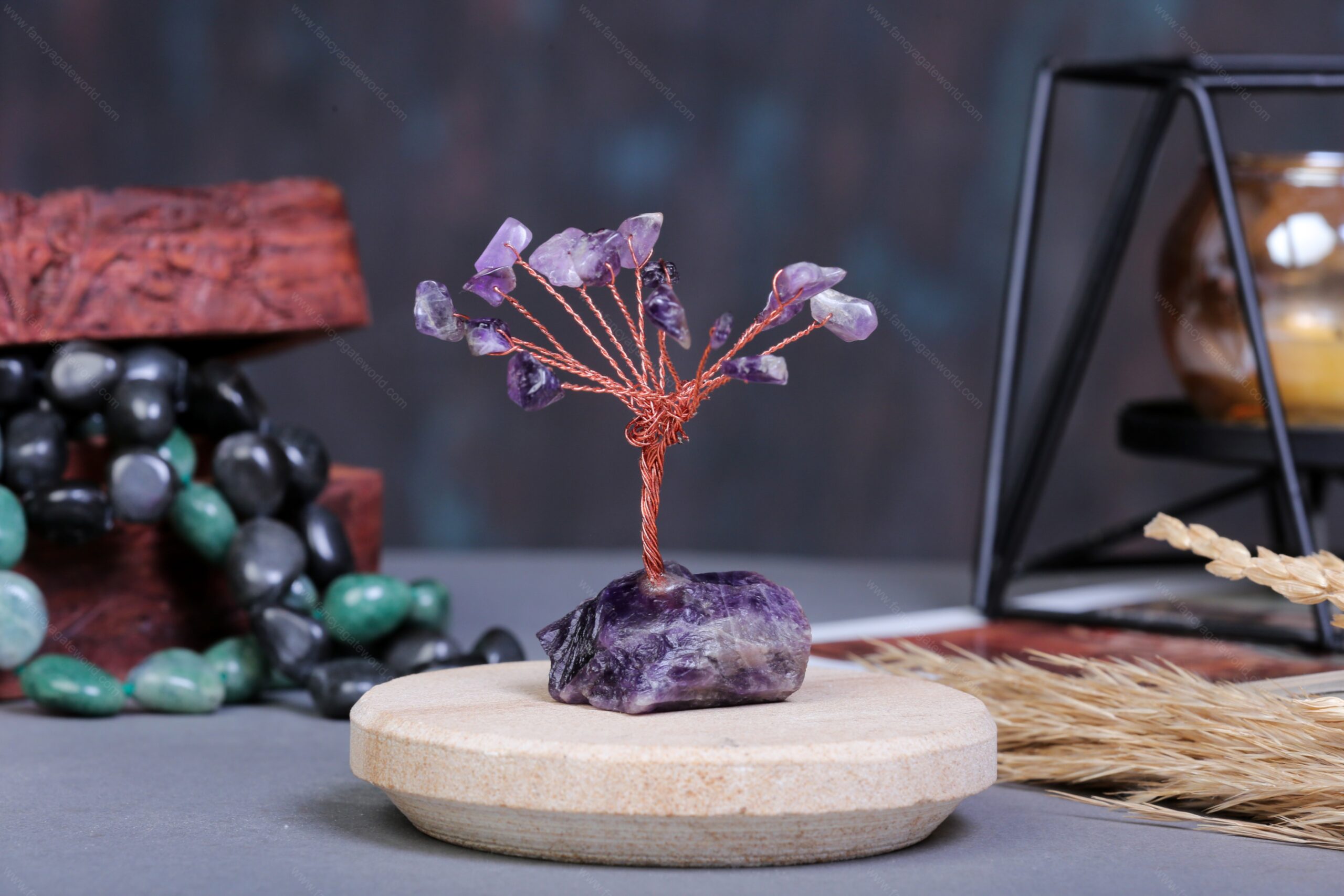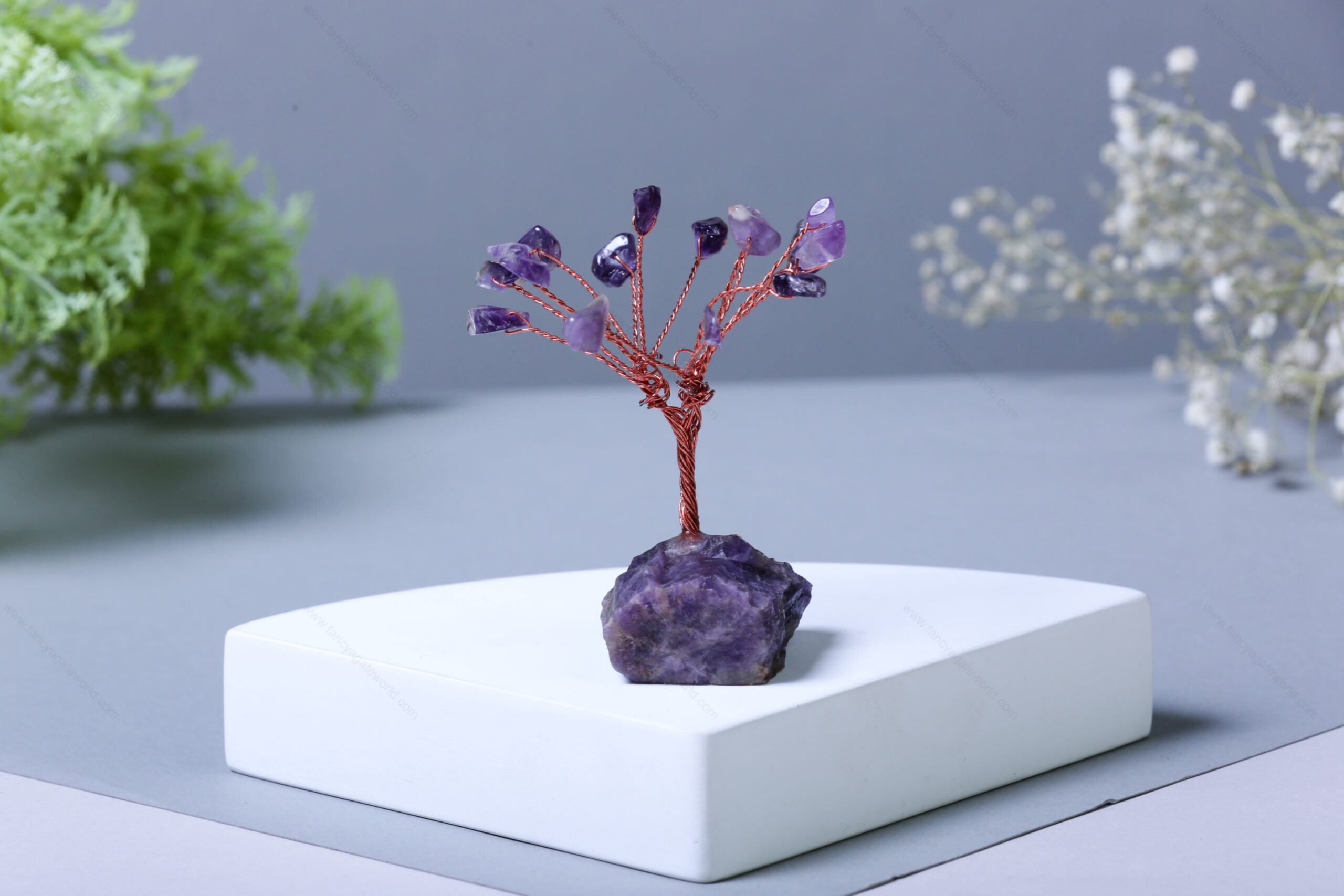 Amethyst Chips and Rock Base Energy Tree For Office and Home Decor