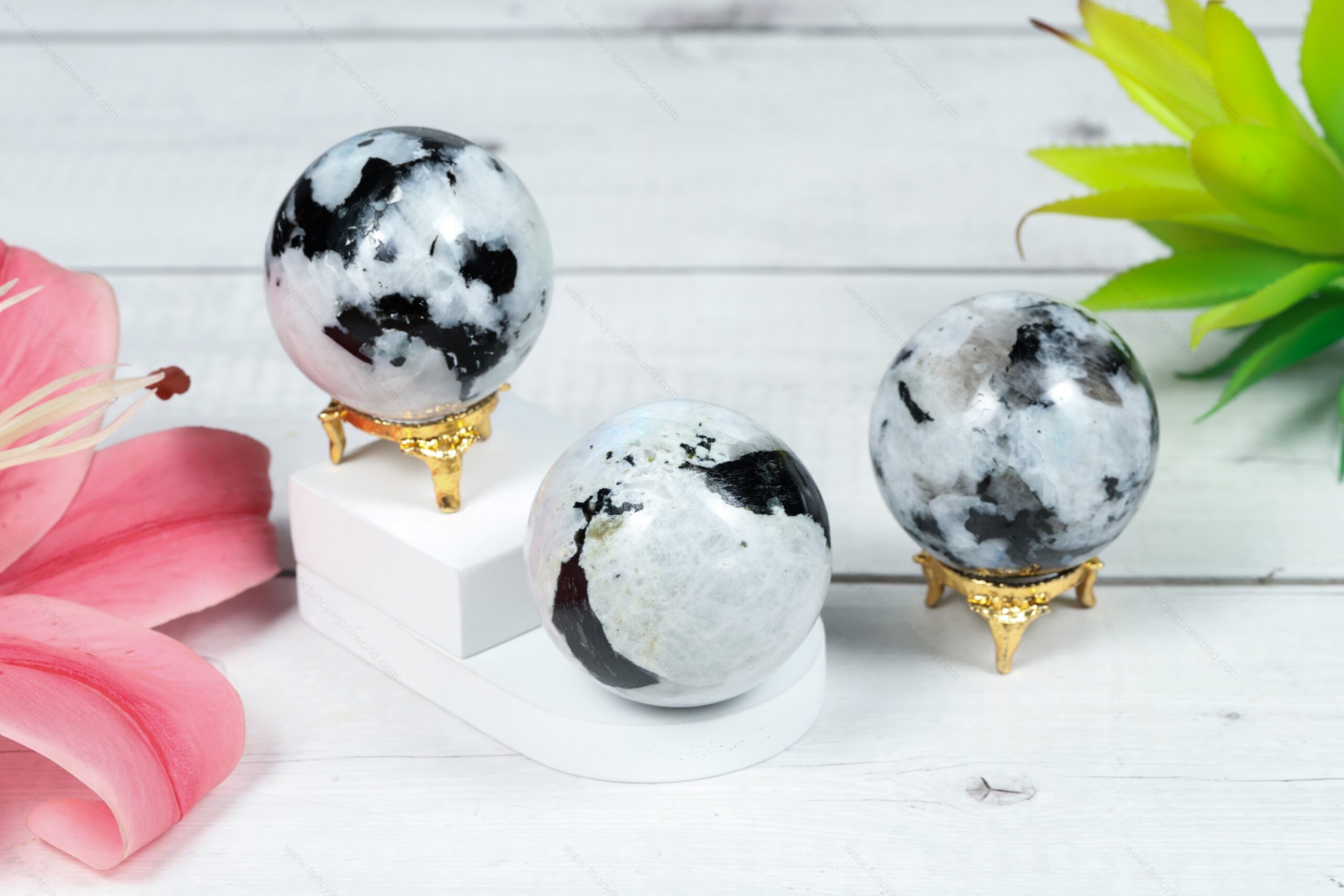 White Rainbow Moonstone Sphere for Healing, Meditation, Fortune Reading & Home decor.