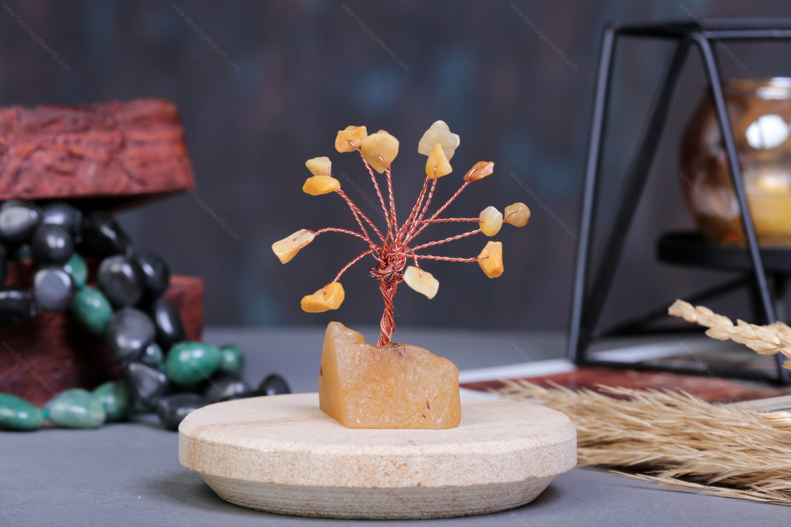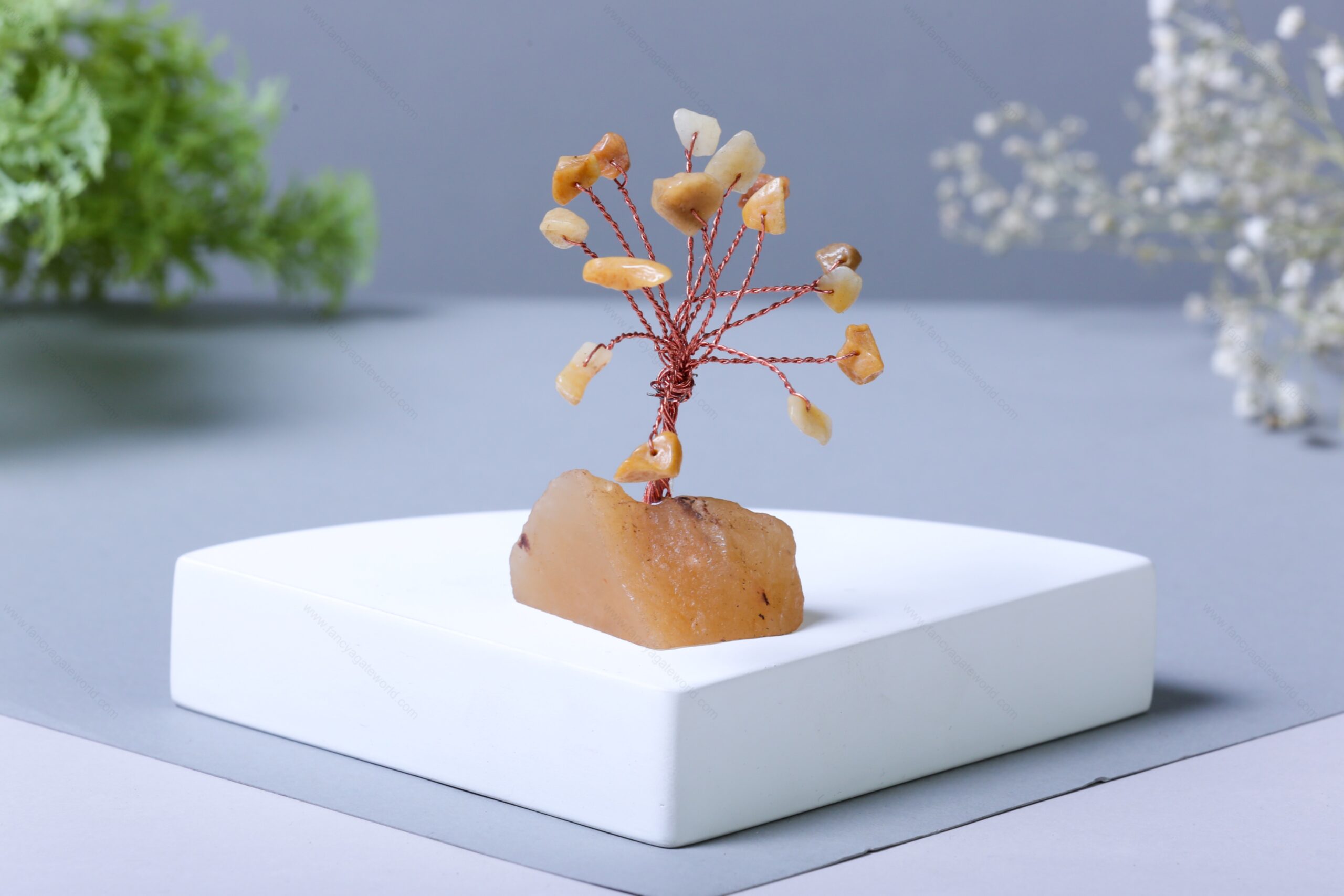 Citrine Chips and Agate Slice Base Energy Tree For Office and Home Decor