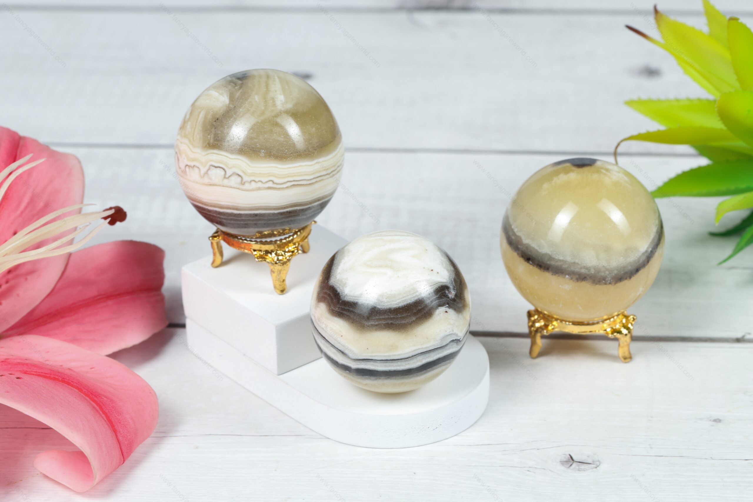 Zebra Calcite Sphere for Healing, Meditation, Fortune Reading & Home decor.