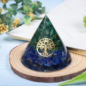 Green Jade + Lapis lazuli + Tree of Life Symbol Cone Energy Orgone Pyramid